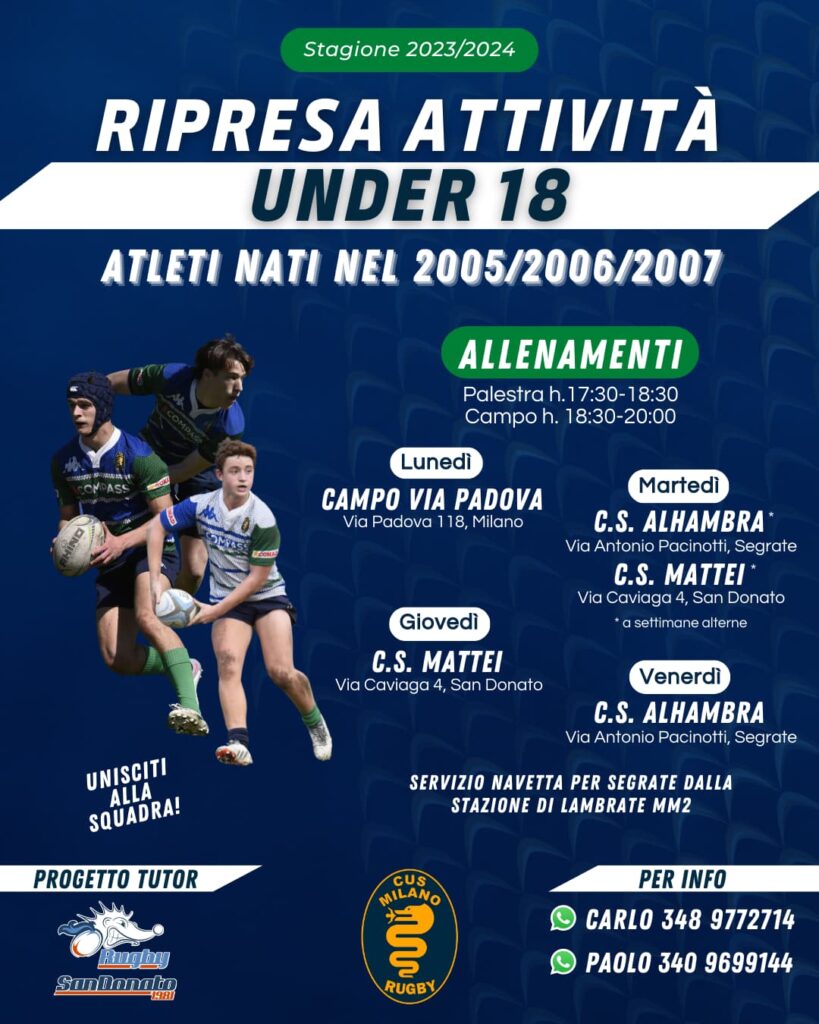 Orari e campi di allenamento della categoria Under 18